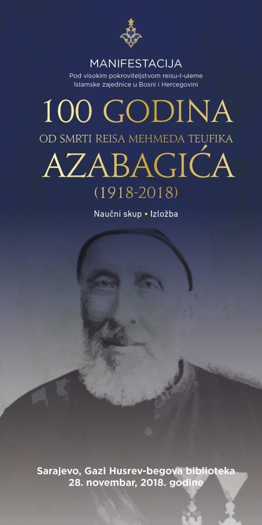 Pod visokim pokroviteljstvom reisu-l-uleme Islamske zajednice u Bosni i Hercegovini u Sarajevu će se 28. novembra 2018. u organizaciji Uprave za obrazovanje i nauku, Instituta za islamsku tradiciju Bošnjaka, Gazi Husrev-begove biblioteke, El-Kalema, Instituta za društvena i religijska istraživanja i Media Centra, upriličiti manifestacija “100 godina od smrti reisa Mehmeda Teufika Azabagića”. Program manifestacije sastoji se od: izložbe, naučnog skupa na kojem će biti premijerno prikazan dokumentarni film o reisu Azabagiću i promocije knjige Grand Mufti Mehmed Teufik Azabagić and his Risala on Hijra na engleskom jeziku.