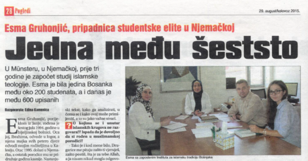 U okviru svojih redovnih aktivnosti, Institut za islamsku tradiciju Bošnjaka daje studentima fakulteta srodnih oblasti mogućnost volontiranja ili stažiranja na Institutu u periodu od jednog do tri mjeseca. Od početka mjeseca augusta na Institutu stažira studentica Esma Gruhonjić koja je ovim povodom dala intervju za dnevne novine Oslobođenje. Intervju vam donosimo u prilogu.